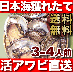 送料無料!日本海産天然あわび「活アワビ/3-4人前約350-400g」漁港から直送です。